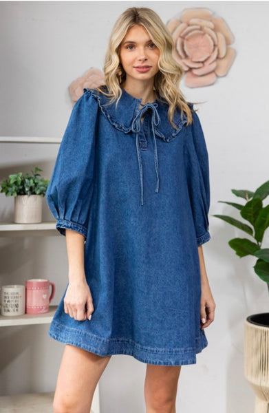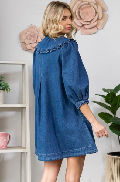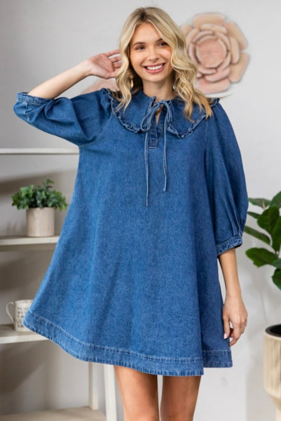 Keep it casual and chic with this denim mini dress. Featuring a flattering smocked waist that cinches you in all the right places, a split neckline, and relaxed short sleeves, this dress is the perfect blend of comfort and style. The soft denim fabric and subtle seam detailing give it a timeless look you can wear year-round. Pair it with sneakers for daytime errands or dress it up with wedges and accessories for a night out.