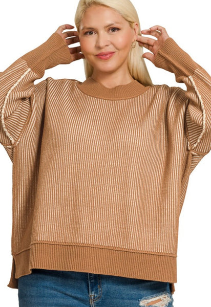 This stylish pullover sweater features a luxurious ribbed knit construction in warm camel tones. Made from soft, comfortable fabric blend that provides excellent warmth and breathability. The relaxed fit design with dropped shoulders creates a modern, effortless silhouette perfect for casual everyday wear. The classic crew neckline and long sleeves offer versatile styling options for layering or wearing alone. Ideal for fall and winter seasons, this pullover combines comfort with contemporary fashion trends, making it a wardrobe essential for casual outings, work-from-home days, or cozy weekend activities.