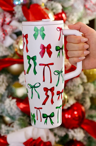 Red and Green Bow Tumbler 40oz - $29.00 USD