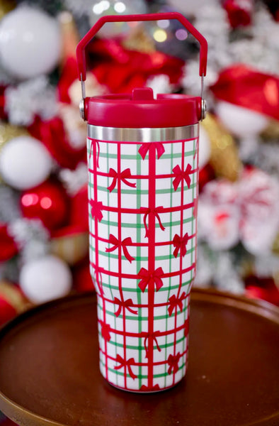 Red Plaid Bow Tumbler 30oz - $29.00 USD