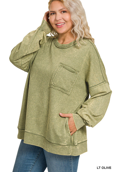 Lt Olive Acid Wash Pullover Plus